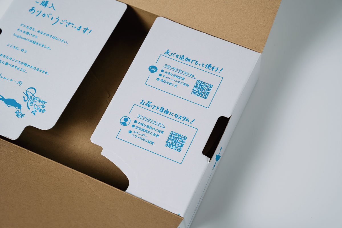 LINE公式アカウントやマイページにすぐにアクセスできるQRコードも追加もしました。商品が届いたついでに、公式LINEの確認や配送頻度の変更などもサッとできて便利です!