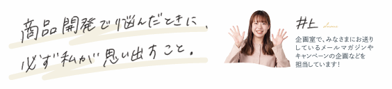 自分が一から作り上げたシャンプーをみなさまにお届けできるなんて夢のような話で、決まったときは今にも踊りだしそうな嬉しさでいっぱいでした…!!ただ、はじめこそワクワクに満ち溢れていましたが、実際に開発に動き出した今は、ひとつの商品を作ることの難しさにぶつかっています。お客さまが欲しいシャンプーってどんなもの?私はこのシャンプーを通してどんなか価値を提供できる?考えれば考えるほど、迷走してしまう毎日です。