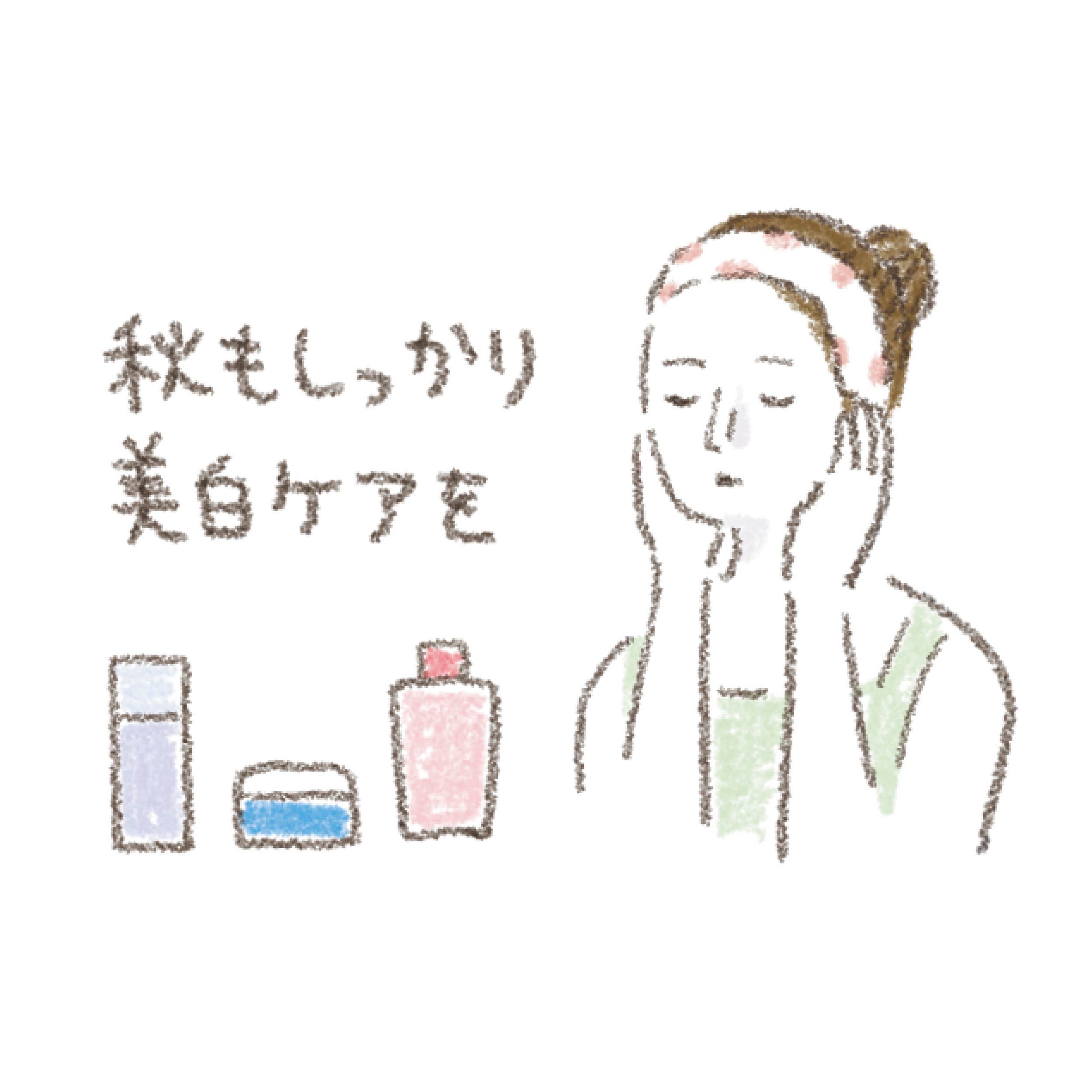 紫外線量は減ってくる時期ですが、肌の色は最も暗く、角質層が乱れがちに。引き続き美白ケアを行って。また、紫外線の影響で角質層が乱れた状態になりがちです。不要な角質を除去するケアも取り入れると良い時期ですよ。