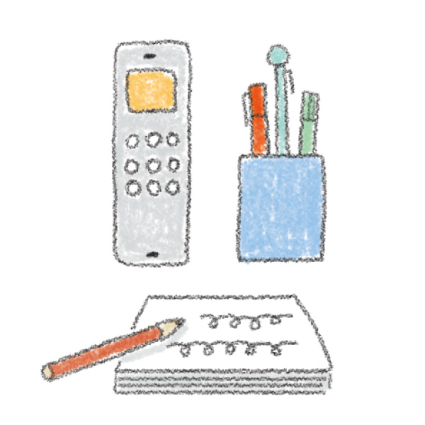 カテゴリでグループ化してももちろん良いのですが、おすすめはシチュエーションで使うものも一緒にグループ化すること。たとえば、電話の周りにメモ帳とペンを収納するといった方法。使うときもしまうときも楽になります。