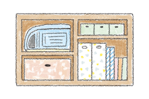 まずは、リビングに収納できる場所の確保が先決です。きっと、すでに配置されている収納家具があるはず。中身は整理されていますか?必要のないものはありませんか?滞在時間が長くなりがちなリビングだからこそ、不用品もたまりやすくなります。定期的に中身を見直すタイミングを取りましょう。
