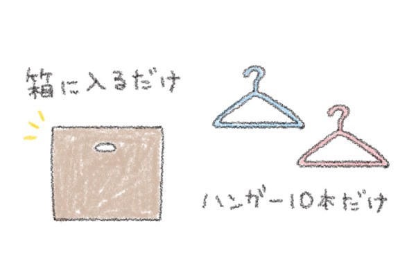 このボックスに入るだけ、この数のハンガーにかかるだけなど、自分の中でルールをつくると、必要以上にモノが増えることを防ぐことができます。家族分も同じように管理を。