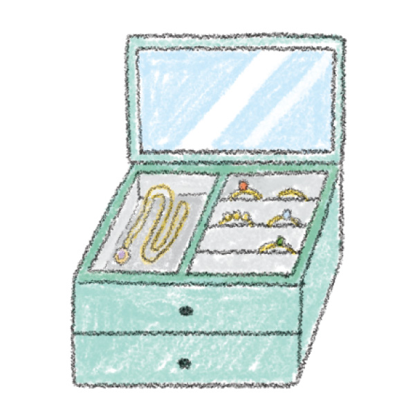 その日に身につけるアクセサリーはメイク後に選びますか?着替えてから選びますか?メイク後ならメイクボックス周辺に、着替え後ならクローゼット周辺にアクセサリーを収納することで、部屋のなかでの移動が減り、効率的に。