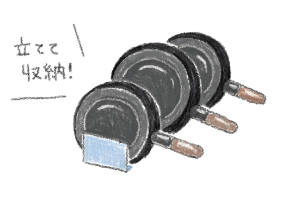 鍋やフライパン、フタなど収納したいものが多くなりがちなコンロ下収納。こちらもスタンドを使って立てて収納したほうが取り出すときも片付けるときも楽になりますよ。