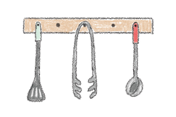 おたまや菜箸などのツールは、コンロの近くに収納したいもの。見せて収納する場合も隠して収納する場合も、重ならないようにすると使うときにパッと見つけられます。