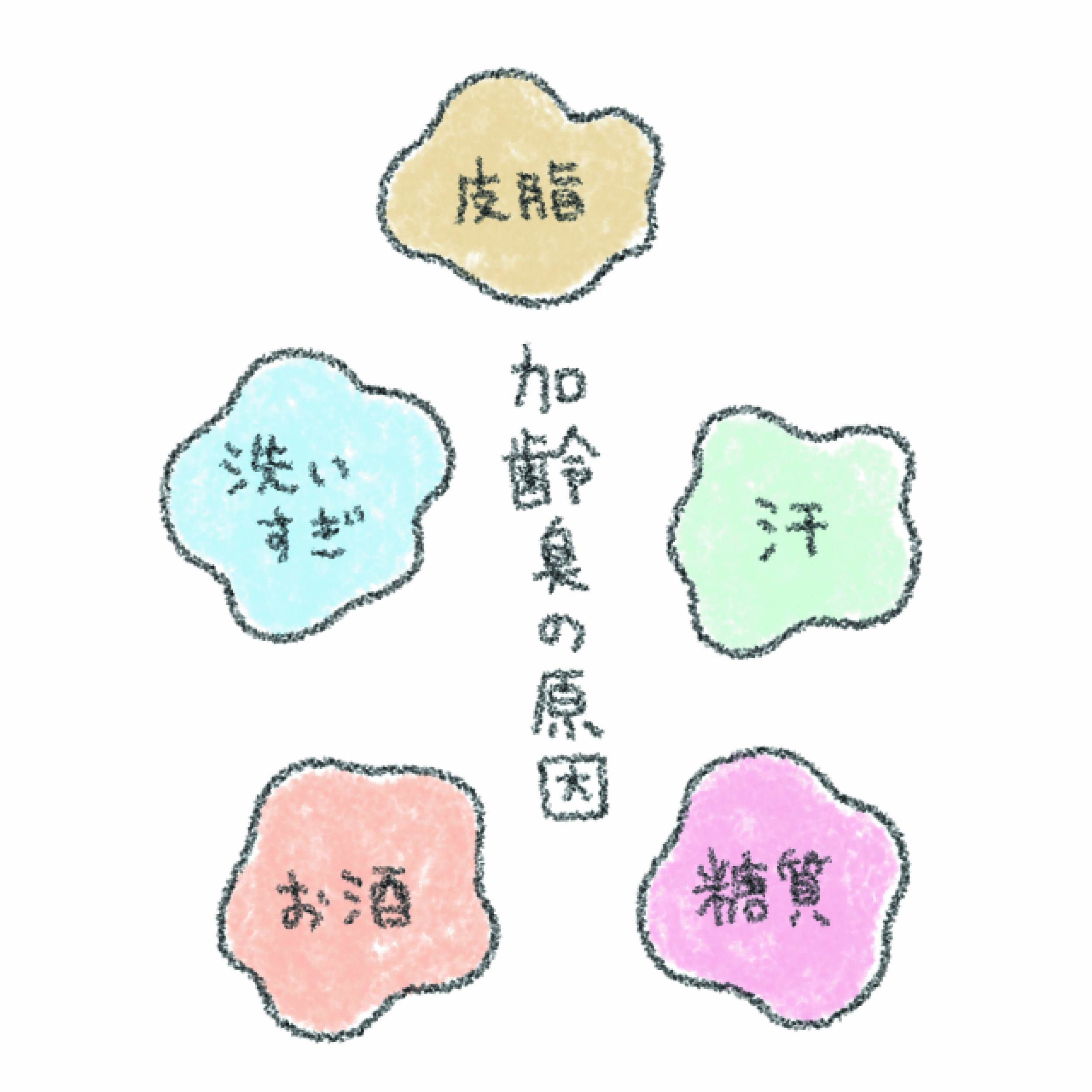 また、普段汗をかく習慣がなく汗腺が弱っている場合、ミネラルが多く含まれた「ベタベタ汗」をかくことに。これは皮膚常在菌の増殖の原因になり、さらにニオイが発生しやすくなってしまうんです。ほかにも糖質の過剰摂取、お酒の飲みすぎ、カラダや頭皮の洗いすぎなど身近なところに加齢臭の原因が潜んでいるんですよ。