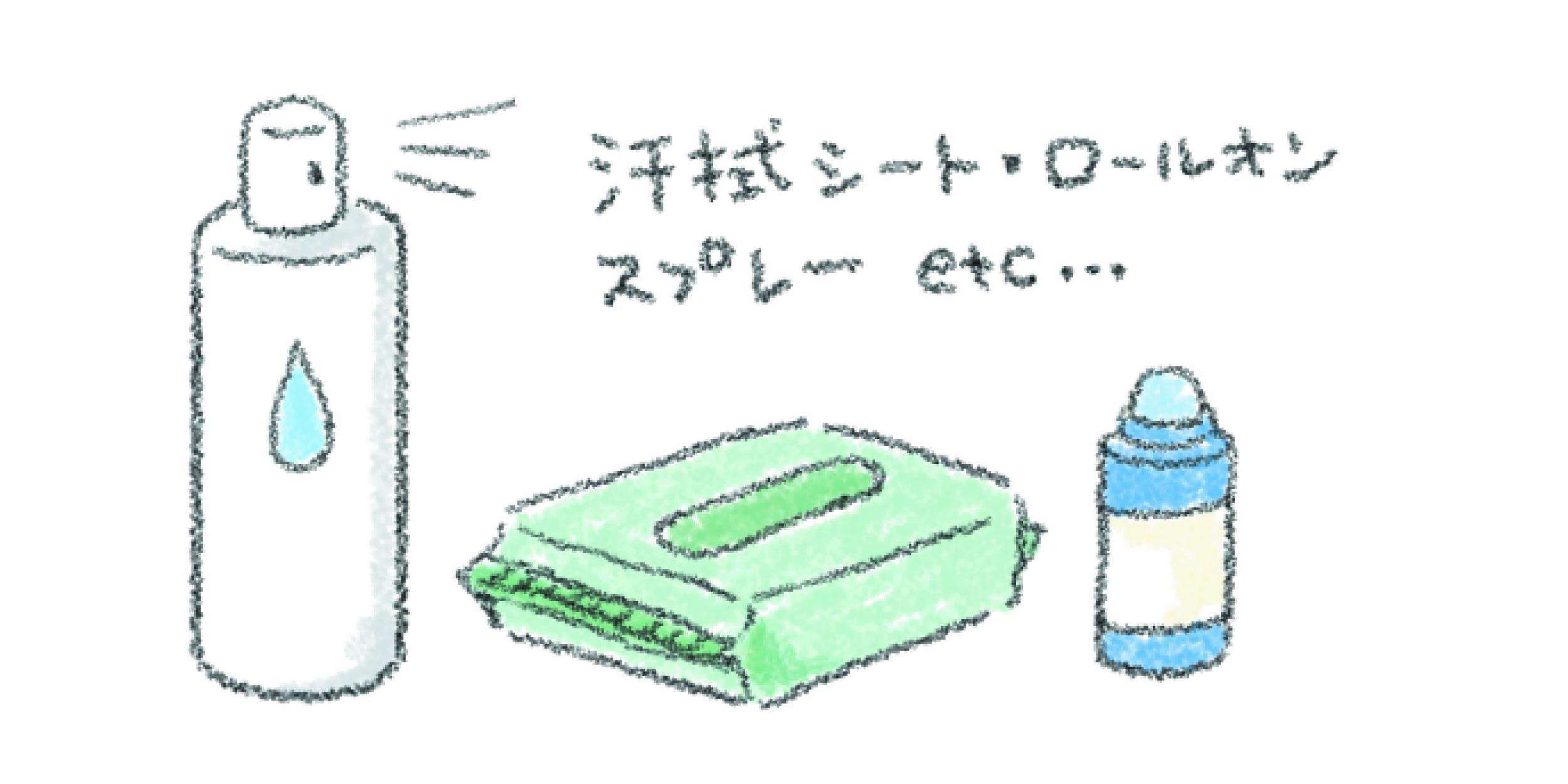 最近では汗を抑えるデオドラント剤や制汗剤もたくさん発売されています。ニオイ対策には有効ですが、毛穴をふさいで体温調整が難しくなってしまう場合も。ポイント使いを意識しましょう。